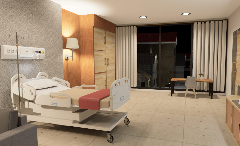 Bedhead Wallduct pada tempat tidur rumah sakit terbuat dari aluminium. Dilengkapi dengan saklar lampu, stop kontak sebagai sumber listrik, dan terdapat lampu penerangan. Outlet gas serta pemipaan dan pengkabelan tersembunyi dengan rapih didalamnya. Rumah sakit dapat memilih warna yang sesuai dengan konsep dan tema tertentu.